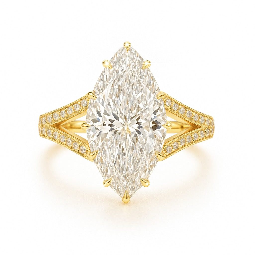 3 Carat Lab-Grown Marquise Diamond Band Engagement Ring in 18k Yellow Gold