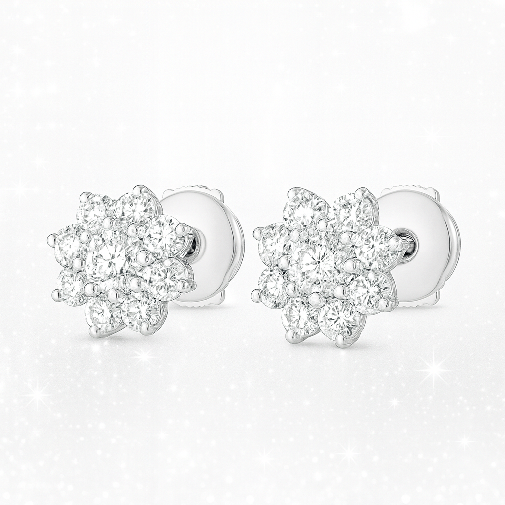0.25 Carats Diamond Star Stud Earrings - 18K White Gold