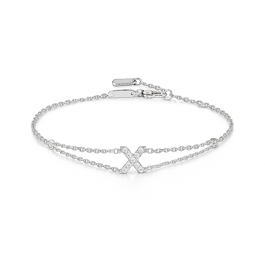 0.1ct - Letter Bracelet “X” – 18K White Gold