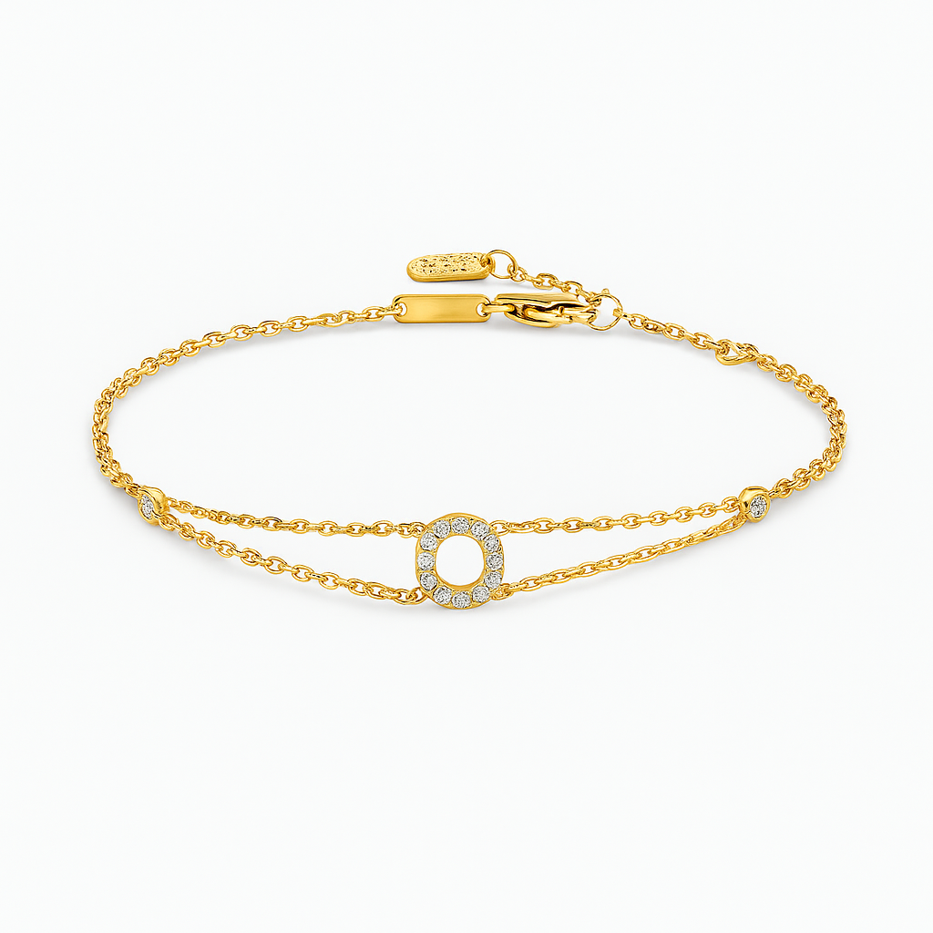 0.11ct - Letter Bracelet “O” – 18K Yellow Gold