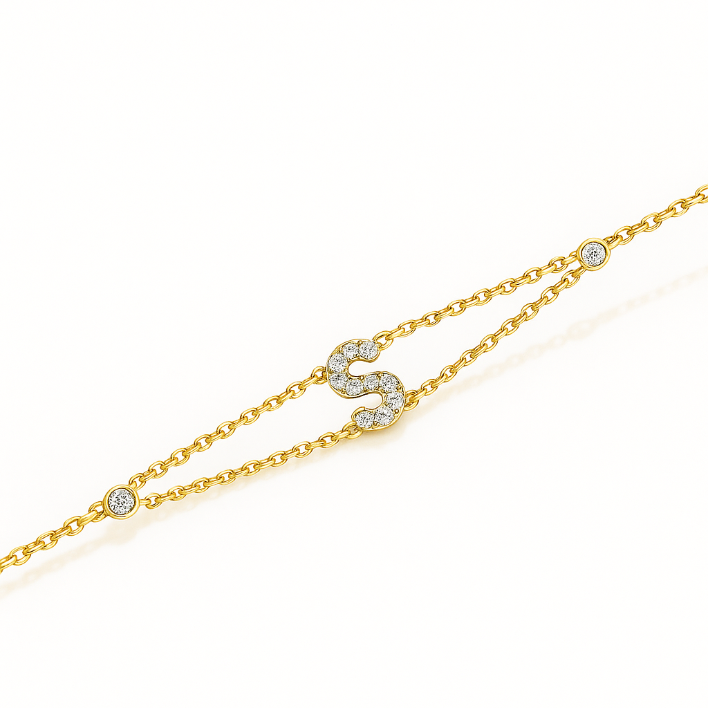 0.1ct - Letter Bracelet “S” – 18K Yellow Gold