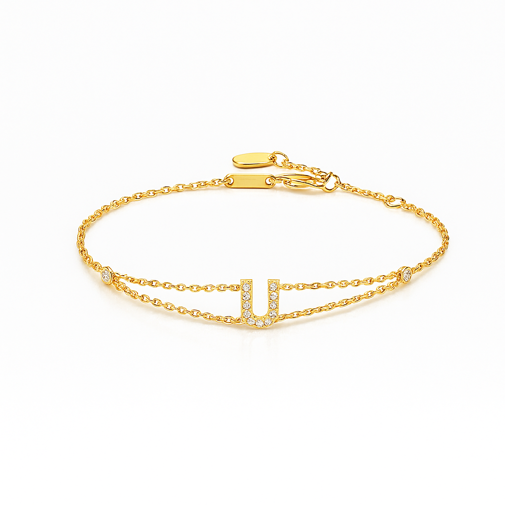 0.1ct - Letter Bracelet “U” – 18K Yellow Gold