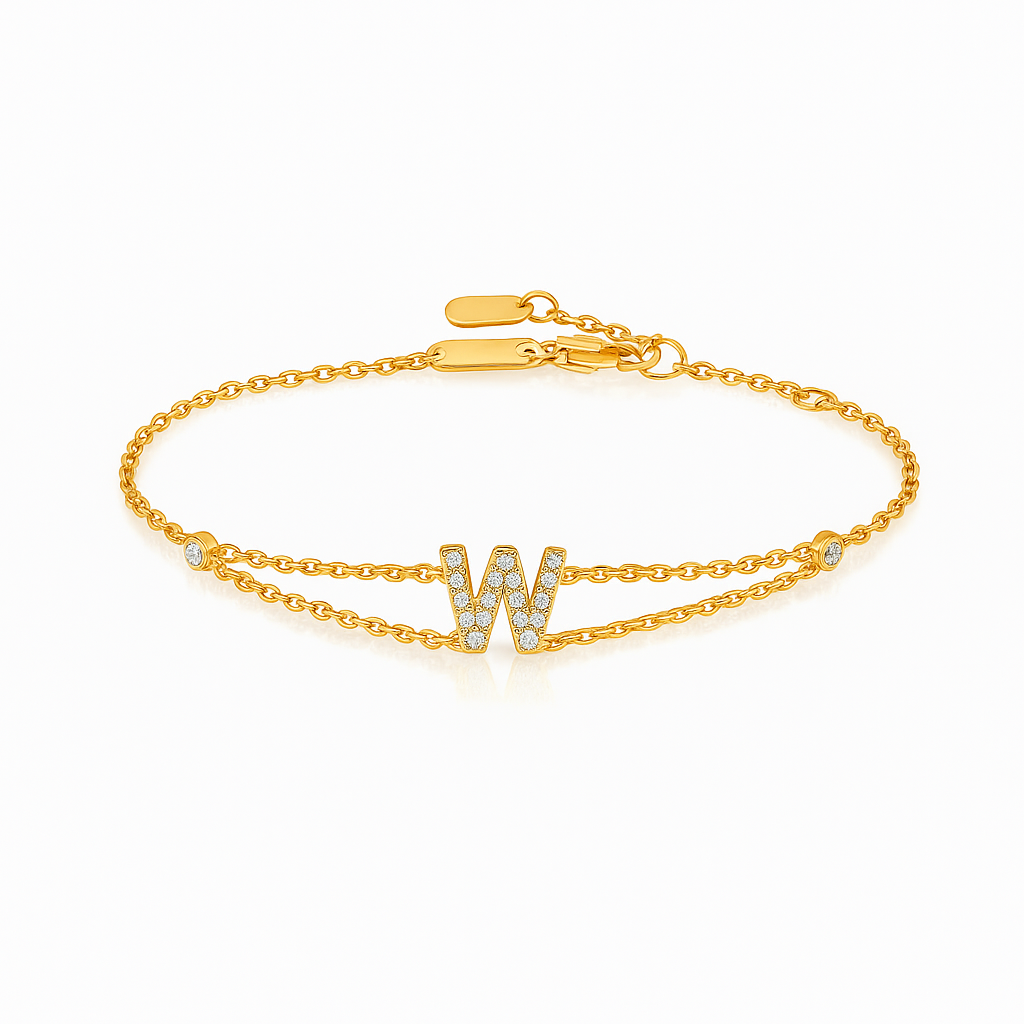 0.14ct - Letter Bracelet “W” – 18K Yellow Gold