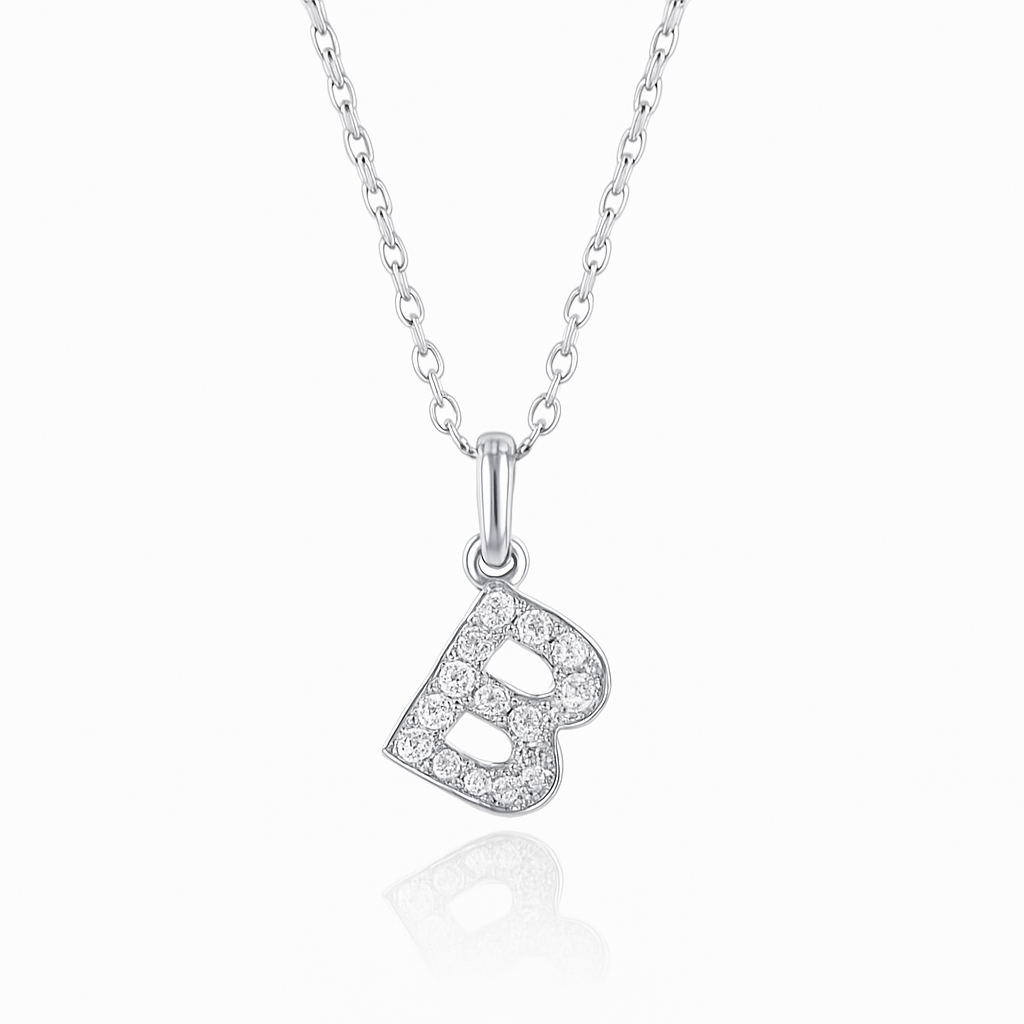 0.17ct - B Letter Pendant – 18k White Gold