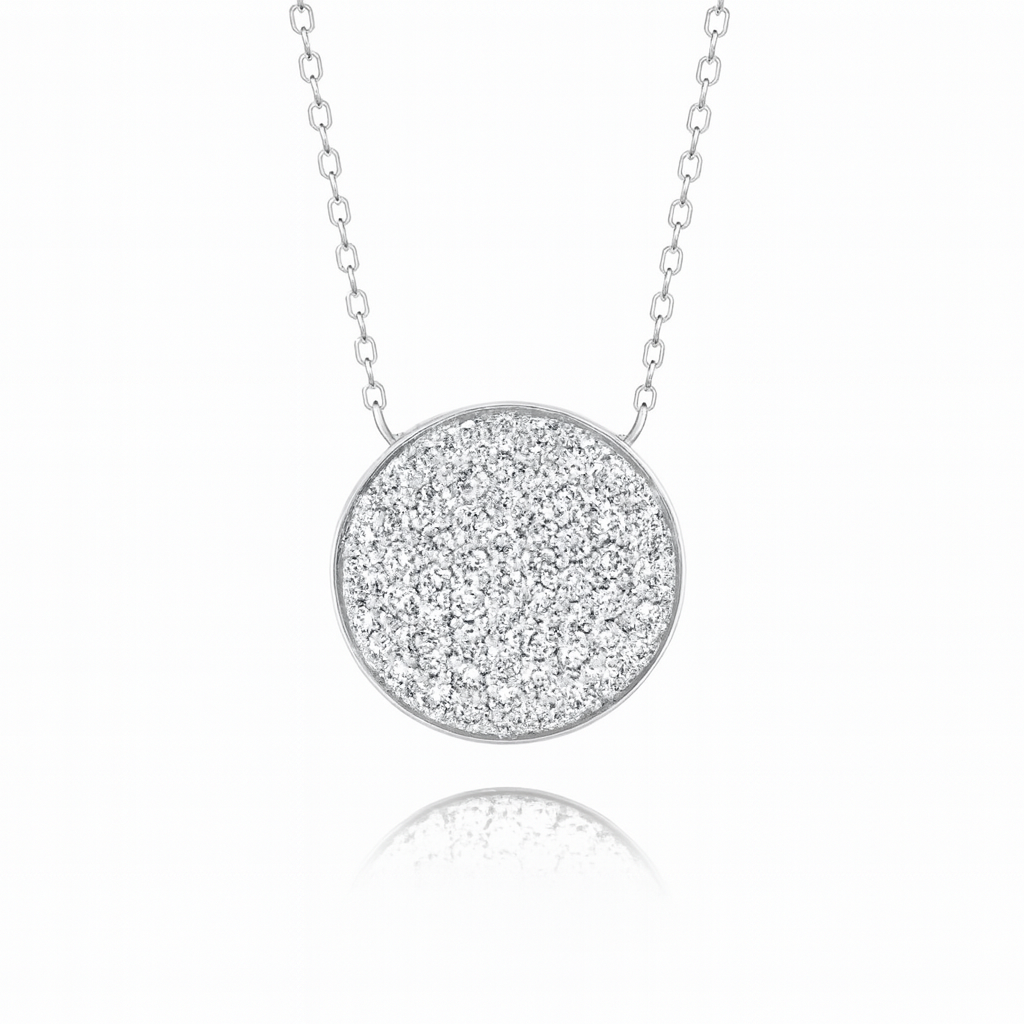 1ct - Large Diamond Disc Pendant – 18K White Gold