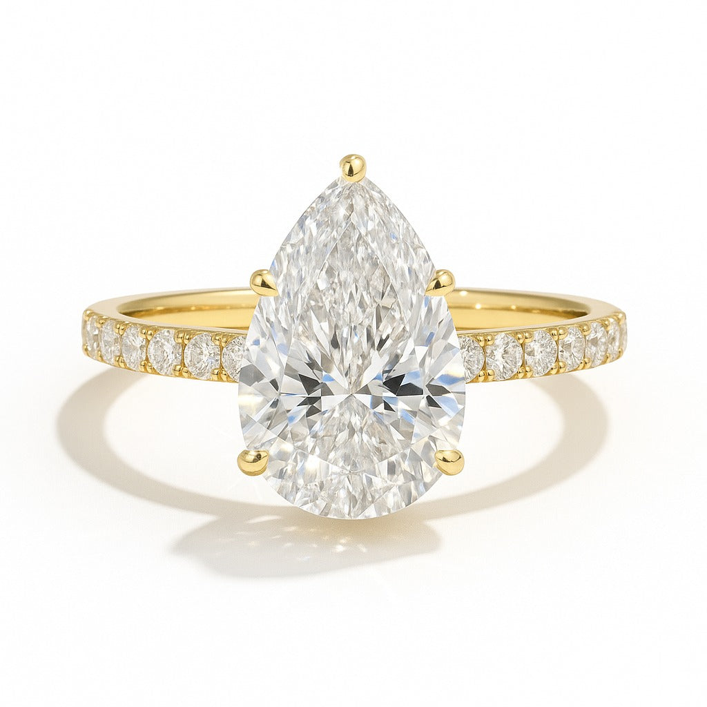 2.5 Carat Lab-Grown Pear Diamond Engagement Ring with Diamond Band – 18k White Gold