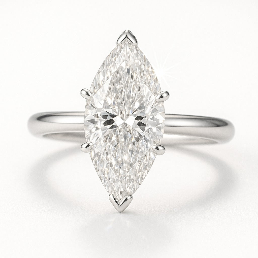 2 Carat Marquise Lab-Grown Diamond Solitaire Engagement Ring - 18k Yellow Gold